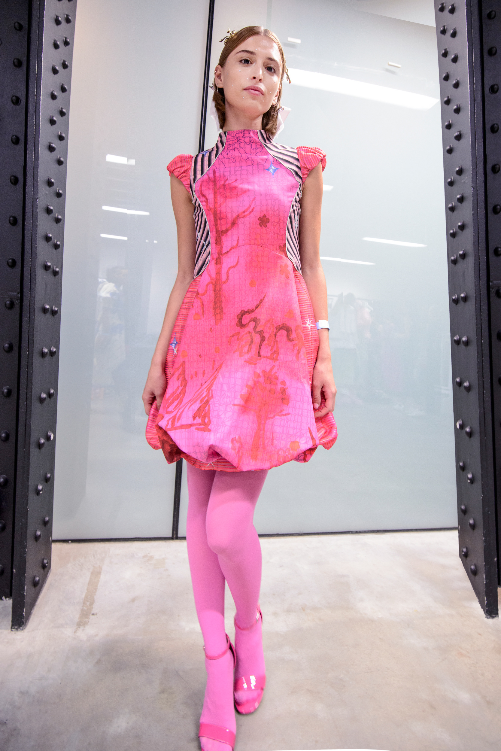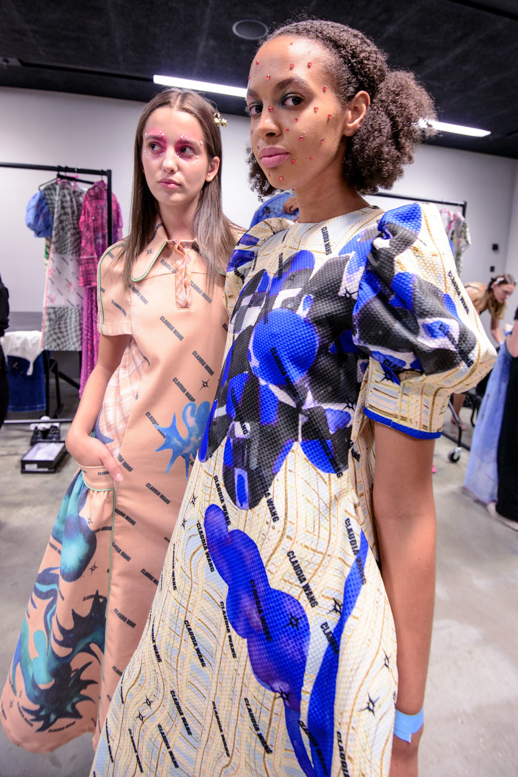 Now here we are in a rush of hot cuts and psychedelic prints that seem to show a map to other dimensions. One deep look into Claudia Wangs garments and you're on the other side of the mirror. It's your decision if you can make it back and take some zappy new looks with you.